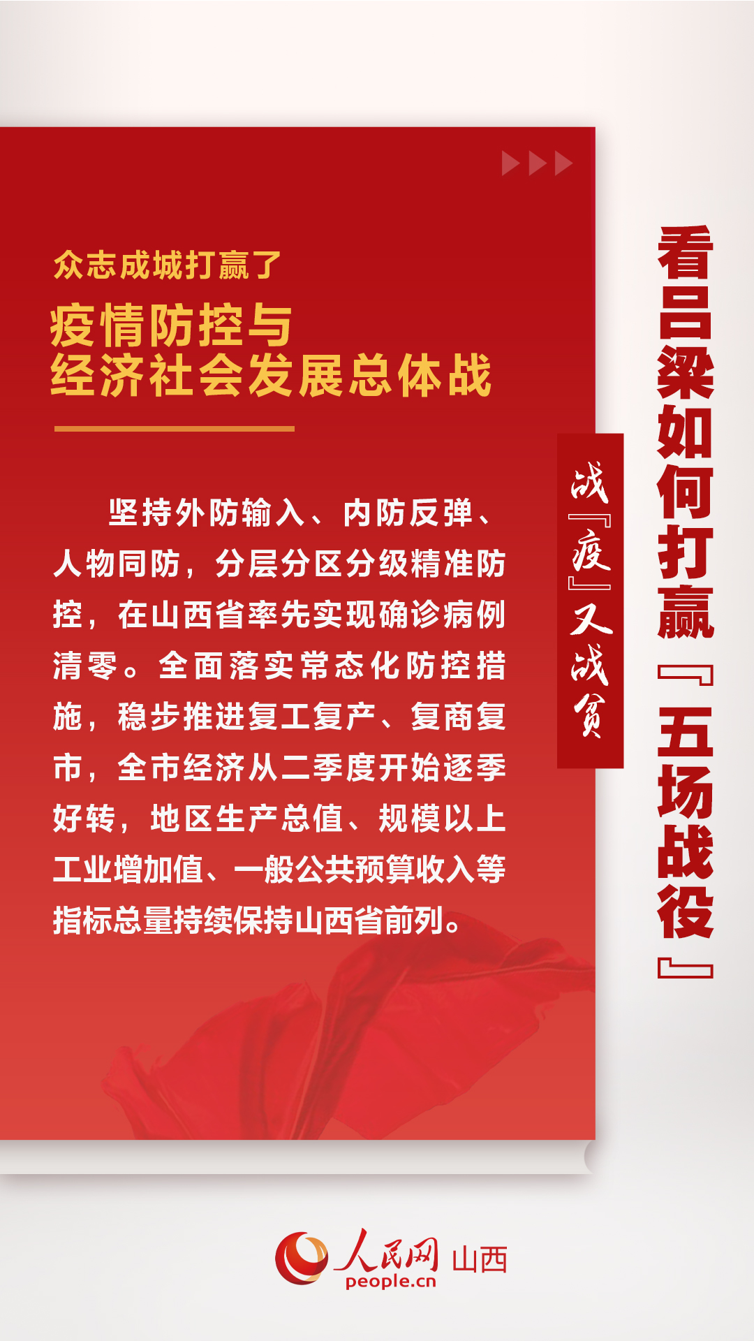 2月23日,吕梁市三届人大八次会议开幕。吕梁市委副书记、代市长张广勇在回顾2020年工作时表示,吕梁市牢牢把握疫情防控主动权,有效应对大战大考,群策群力打赢了“五场战役”。